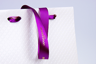 Imprinted ribbons can be used as handles for packing bags. (Min. 1000 pcs.)
